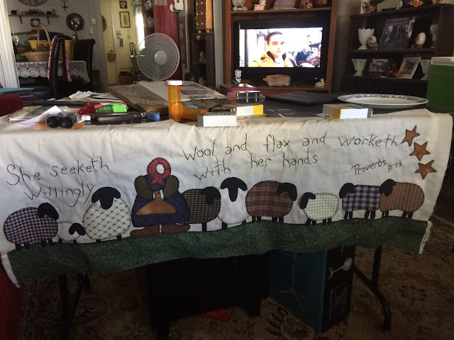 Today so far I went an picked up my groceries which art still sitting in the kitchen waiting to be put away. At some point this afternoon I am going to force myself outside. Then as a reward I will work on the wall hanging. Sad when you have to bribe yourself.